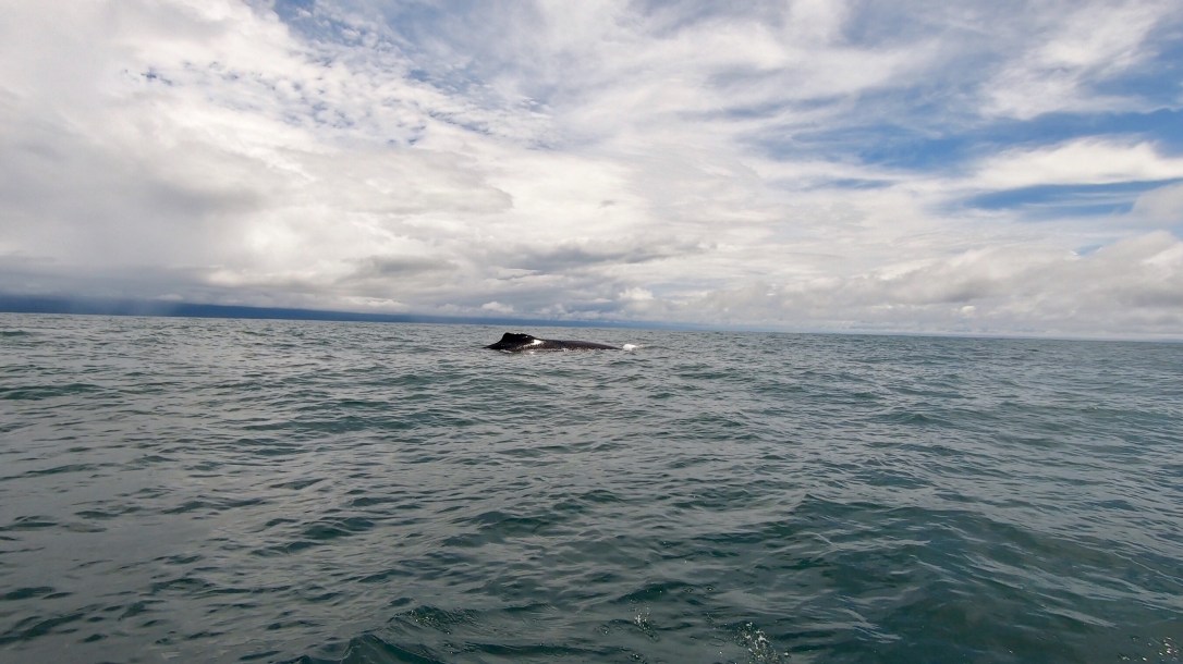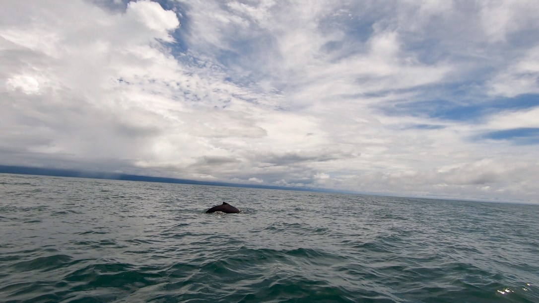 Back at the B&B, Carlos has good news for us. In the morning, he had promised to call (whom, we don’t know) and find out if there are still whales around and indeed, they are. Whale season is from September until end October. They come to the coast of Costa Rica to mate and give birth, as further south, the waters are too cold. We confirm our tour in Uvita for the next day. Around 9am the next day, a small group of people, including us, makes their way to the beach of Marina Ballena national park to go and look for whales. The boat has the size that we feared to have for the diving trip. As we leave the beach, the weather is nice but the sea is already slightly agitated. Not for the lighthearted! After about an hour, we see a spout ahead of us – score. We see the large back of the whale coming out of the water – followed by the smaller back of her calf. Amazed by this wonder of nature, we sit in silence and try to capture the moment on camera as good as we can.