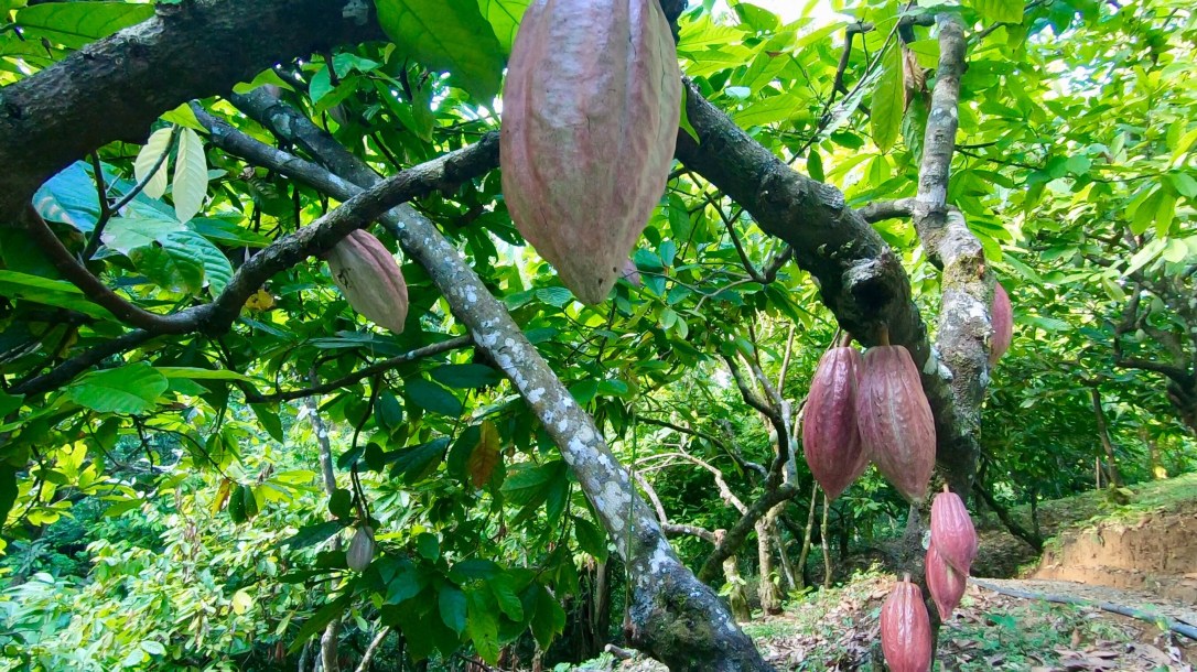 The next morning, it’s beach time. We find a beautiful beach and spend our morning in the shadow of a palm tree and take a dip in the surprisingly violent waves every now and then. Two days later we find out that the beach we actually wanted to go to was a few hundred meters north, with much calmer waters. Nevertheless, we enjoy the quietness of the first beach morning. At 2pm, we have an important appointment: a cacao and chocolate tour! Andreas – a woman – takes us through the forest, not only talking about cacao but explaining all sorts of plants, fruits and animals. She fearlessly touches spiderwebs and poisonous frogs, but seems to know exactly what she’s doing.
