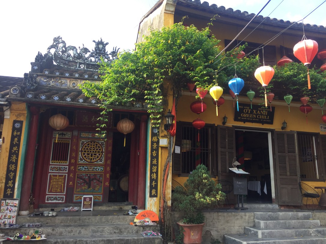 We spend a chilled afternoon wandering around, sipping coffee, and scouting dinner options. We opt for a vegetarian place, and slurp some delicious soup next to a mixed crowd of locals and tourists. In the evening, our friends from Saigon join us in Hoi An and we catch up over some beers by the river, in the garden of our hotel. The next day, they take us all around Hoi An, showing us their favourite spots. Our friend has to get a dress made – Hoi An is known for its tailors – so Julia decides to join her. You can pick the tissue and pattern, the cut and they can make anything you can imagine. As a rule, the more complicated your request, the longer it should take and if you order something like a suit, plan time to try it on several times for the final alterations, which a quality tailor will offer. We order a summer dress each, which will be ready in about 24h, just in time for our departure. After the dresses are ordered, we spend our morning admiring the Chinese colonial architecture of the town,