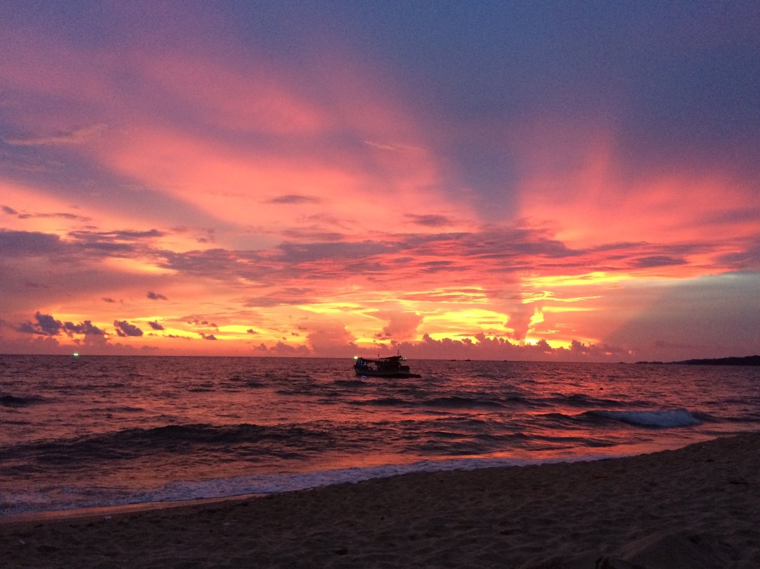 After being quite active for the last week, we are looking forward to a few slower days. On our first day, we walk towards the closest beach – not a great idea, as the street is incredibly muddy. The beach is quite lovely though and we chill in the sun beds all day. In the evening, we order a cab to take us to the main town on the island to check out the night market. The market is very touristy, but we find a lovely little vegan place with a buffet, and treat ourselves to some coconut ice cream afterwards.
