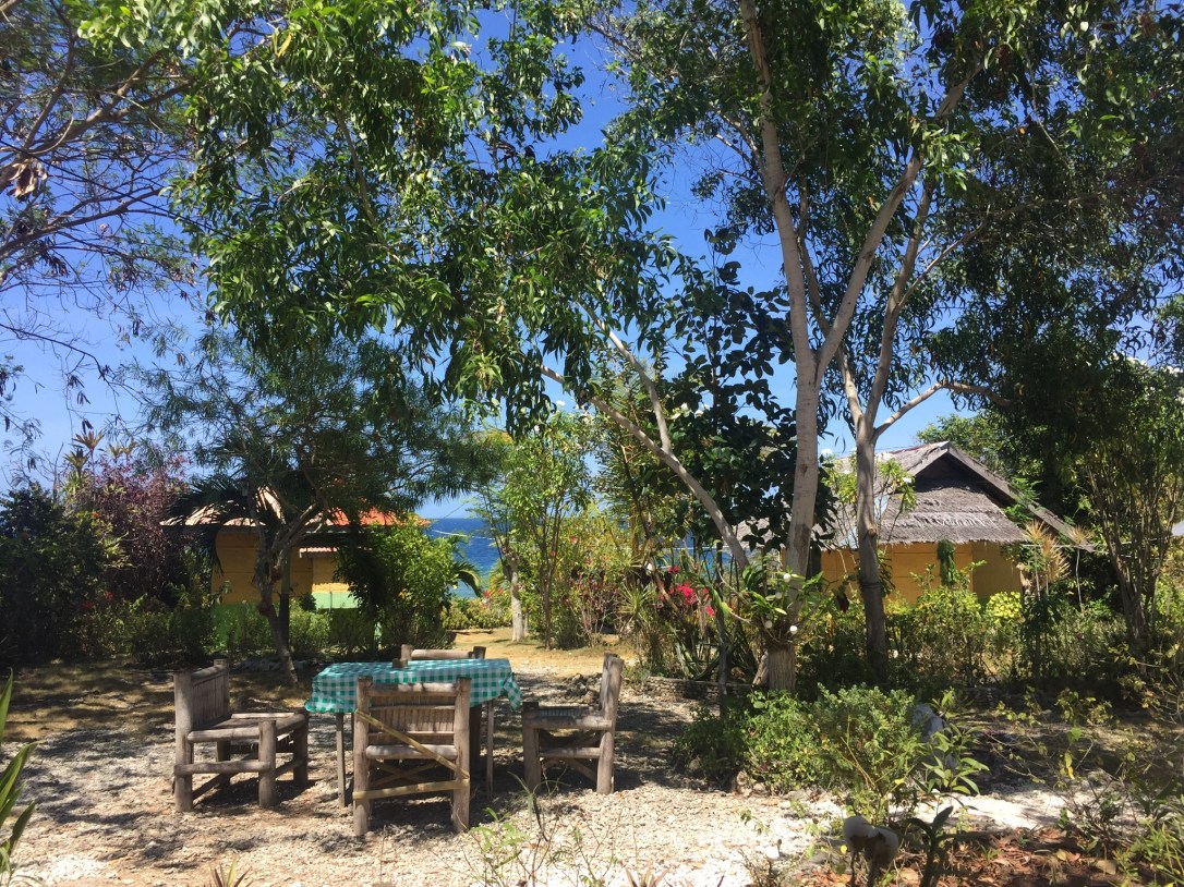 Here, you will find no luxury: bungalows of different sizes with different views (sea or garden), cold water showers (very common in Siqujor), a simple bedroom with fan, and a veranda. The garden is tended to with a lot of attention, there are a kitty and dog that belong to the property (as opposed to the dozens who run around anyway), and stairs lead you to a little private beach (good for snorkelling; if you need to rent equipment you can walk or drive to Kiwi Resort).