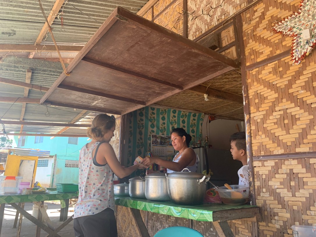 Driving around the island with our scooter, we spotted that some houses had a few pots and pans sitting on their veranda or on their kiosks. On our second day, we were hungry and curious enough to stop at a random house close to Dauin and sneeked a peek into the three pots. Score! One pan full of veggies, one with noodles, and one with meat. (It was already around 3pm, and a man stopping to buy cigarettes asked us if it wasn’t rather time for an afternoon snack than for lunch; had this been a working day for us, we would wholeheartedly agree.)