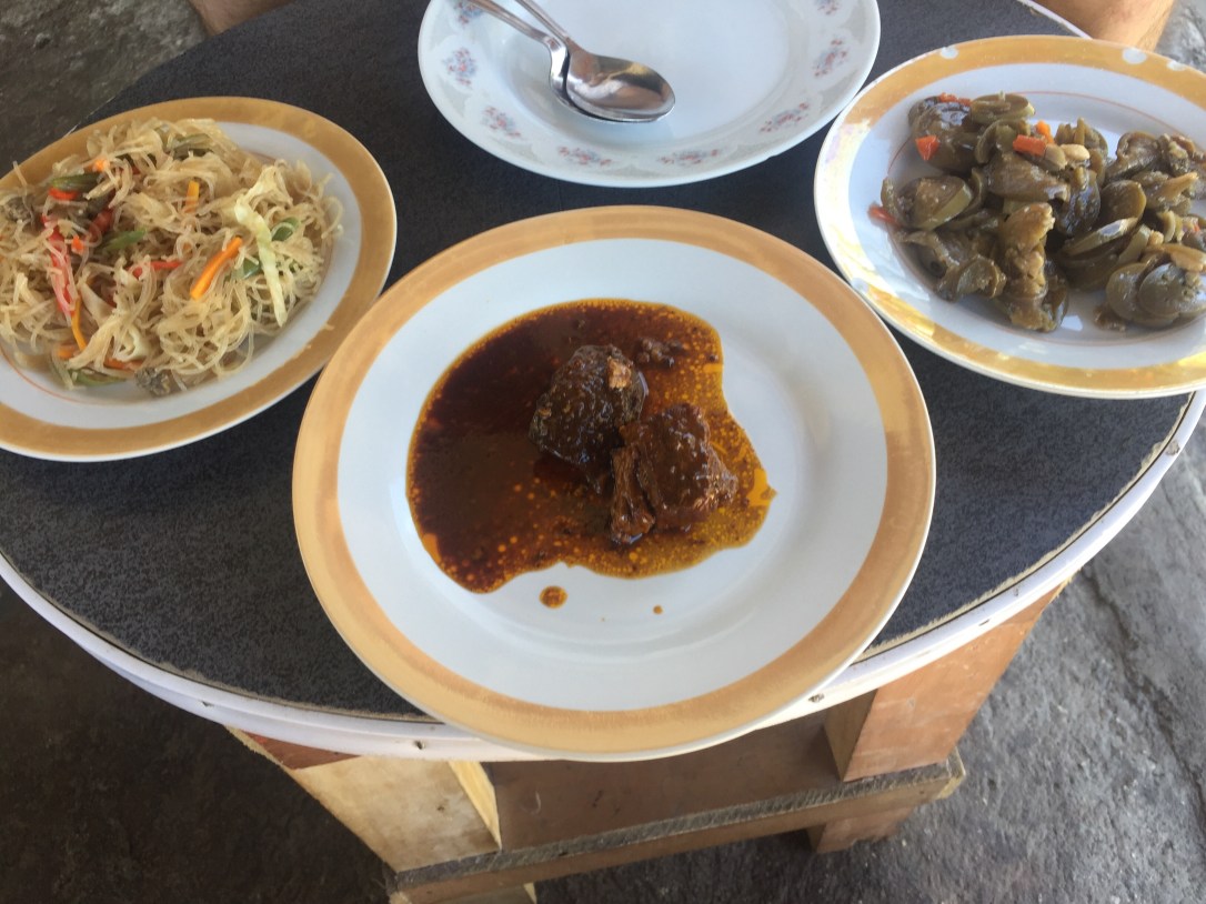 One of the “pots and pans” restaurants – delicious noodles and veggie dishes, as well as meat dishes. Also had a very tasty pastry filled with fresh coconut.