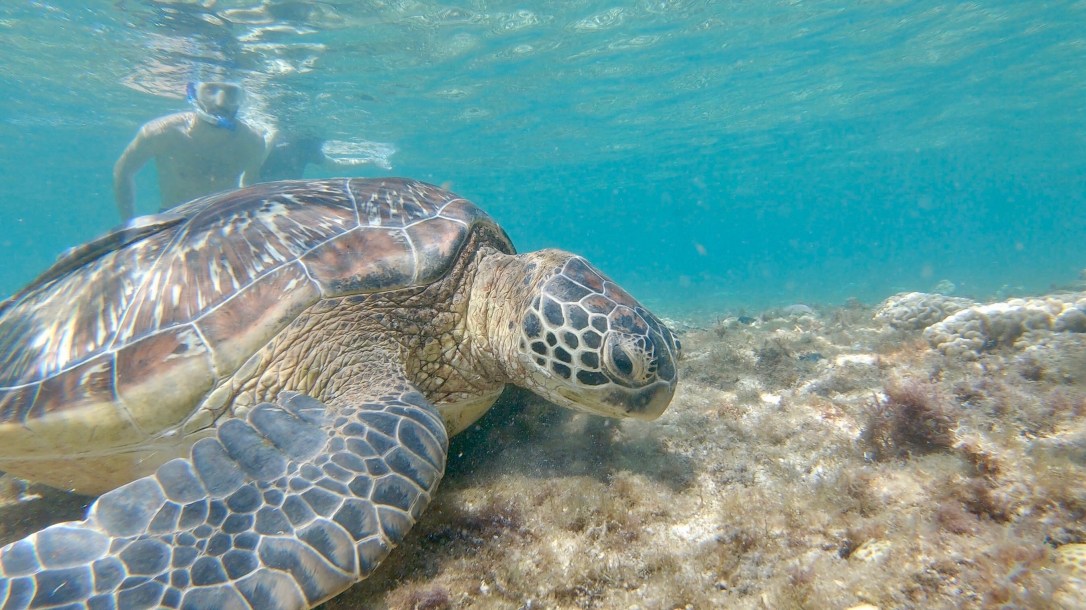 As described above, you can do this with or without a guide. The guide costs 5€/day for as may snorkels as you like. If you want to stay close to the beach, you don’t really need the guide, as you will see plenty of turtles even if you can’t go into a certain area. If you want to go a bit further, the guide can be useful, first of all to direct you and he also has a life buoy in case you get tired. The full amount you pay goes directly to the guide. You can also book a snorkelling tour around the island if you want to see other spots.