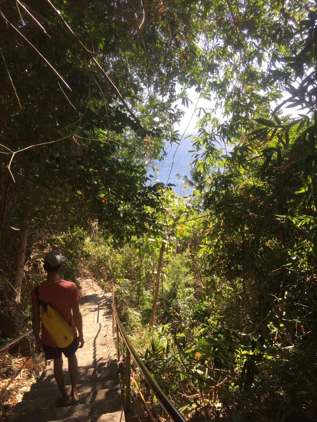 As we want to leave the next day, we also have to figure out how. We need to get to Negros, and, as explained above, there is no particular schedule, you just need to find a boat that leaves anyway, or arrange for private transfer. Your best bet is to leave early in the morning – there is always one boat guaranteed. Brice, asking for the time, makes friends with just the guy who is leaving the island the next morning and secures us two spots on his boat. With this sorted, there’s not much left for us to do! After lunch, we decide to be adventurous and walk up about 3 billion stairs to the lighthouse. The view is quite nice on top of the hill, but especially when going back down, when the blue of the sea mixes with the lush green of the forest. One more dip in the sea, and it’s almost time for the sunset again.