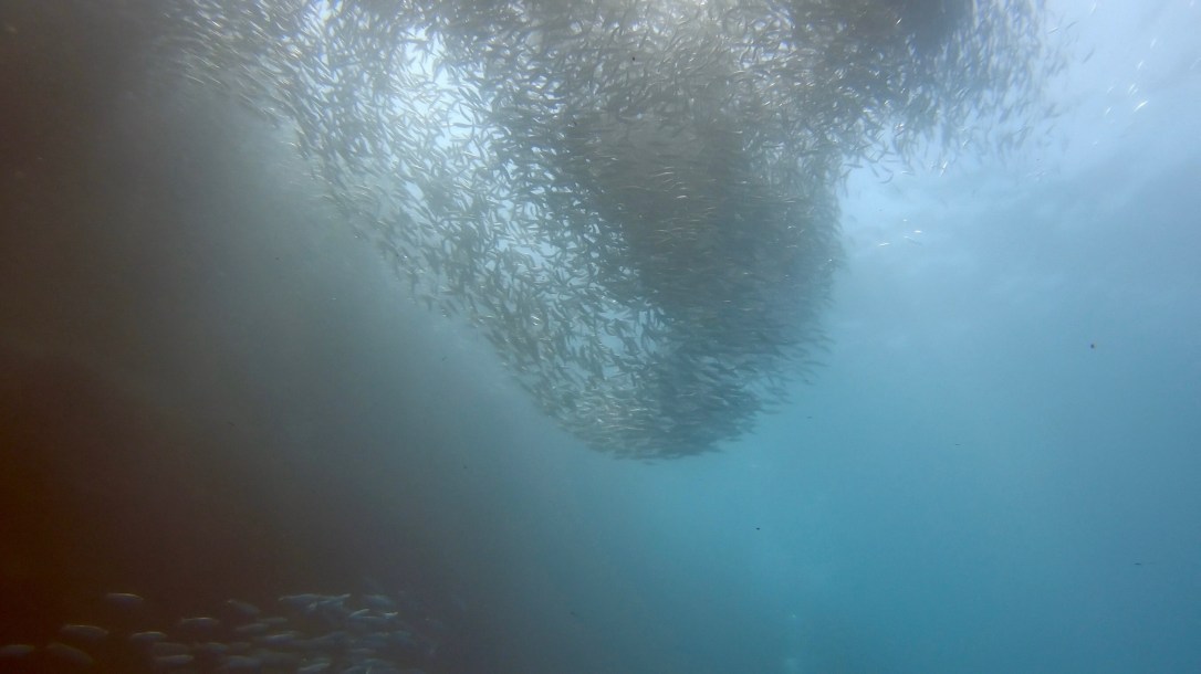 You can snorkel around the sardines simply from the beach (there’s of course not just sardines – we also saw a few turtles, among other things!). You can rent snorkel gear from many shops and hotels, if you don’t have one. We didn’t pay attention to it, but probably tour operators offer snorkelling trips to destinations further afield.