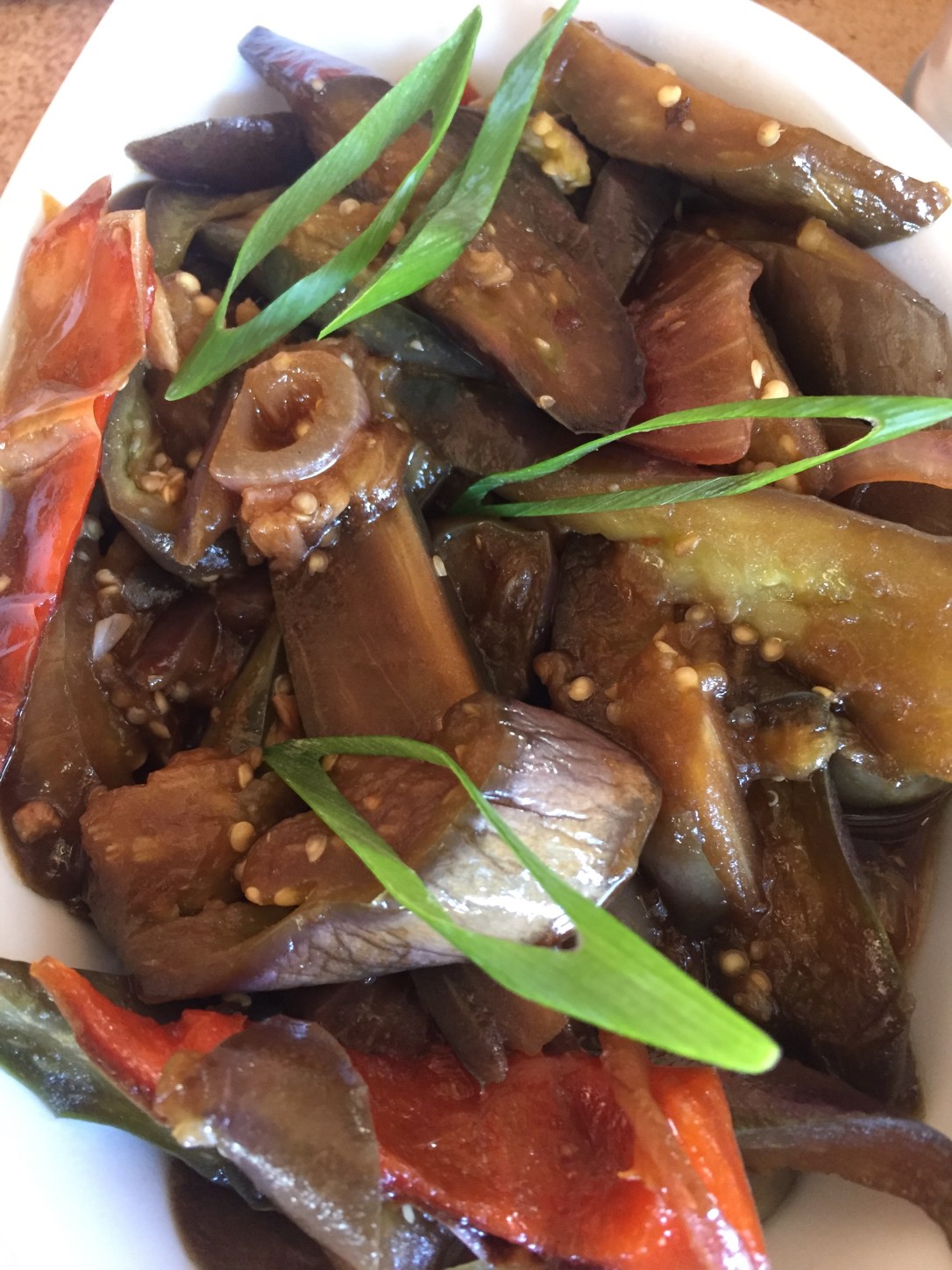 Our expectations for Moalboal are, for now, focused on two things: a hot shower, and laundry. Oh and first: lunch. By the time we arrive we’ve travelled for around 6h. We had bought some delicious banana cake as snacks (we’ve discovered that Filipinos are excellent bakers), but now we are starving and sit down in the hotel’s restaurant as soon as we are checked in. Here we find a surprise: finally a vegetarian version of the Filipino national dish: eggplant adobo. We order two and it is super tasty.