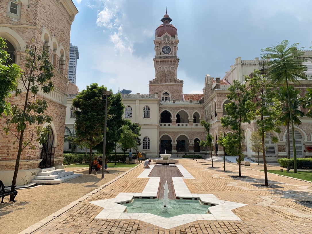 After lunch, we circle back towards the hotel and visit Masjid Jamek, one of the many beautiful mosques in Kuala Lumpur. Just across the river, Merdeka Square with the Sultan Abdul Samad building creates a beautiful contrast to is backdrop of skyscrapers.