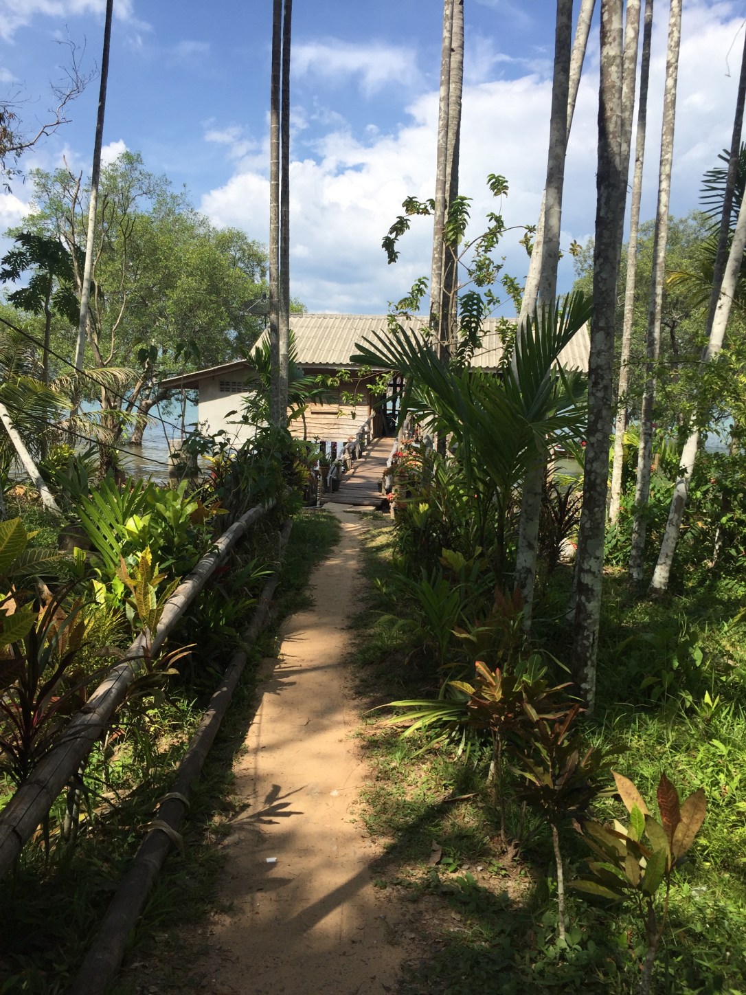 We’d been discussing for a while whether we should stay here for a couple of days, and when we came to Bamboo Bay on Julia’s birthday, we decided to go for it and book for the following weekend – and it was a great idea! This place can cost at least double during high season, and while it’s actually nothing too fancy, we loved our bungalow (with a/c) and enjoyed the infinity pool! The resort is so tucked away that even from the beach the only clue of the hotel being there are the sun beds. Monkeys jump around in the trees (and try to steal your toast at breakfast). The hotel also has a really good restaurant. There is one other restaurant/hotel on the beach, but other than that nothing really is in walking distance. They also offer free pick up/drop off from the pier or, in our case, our first hotel.