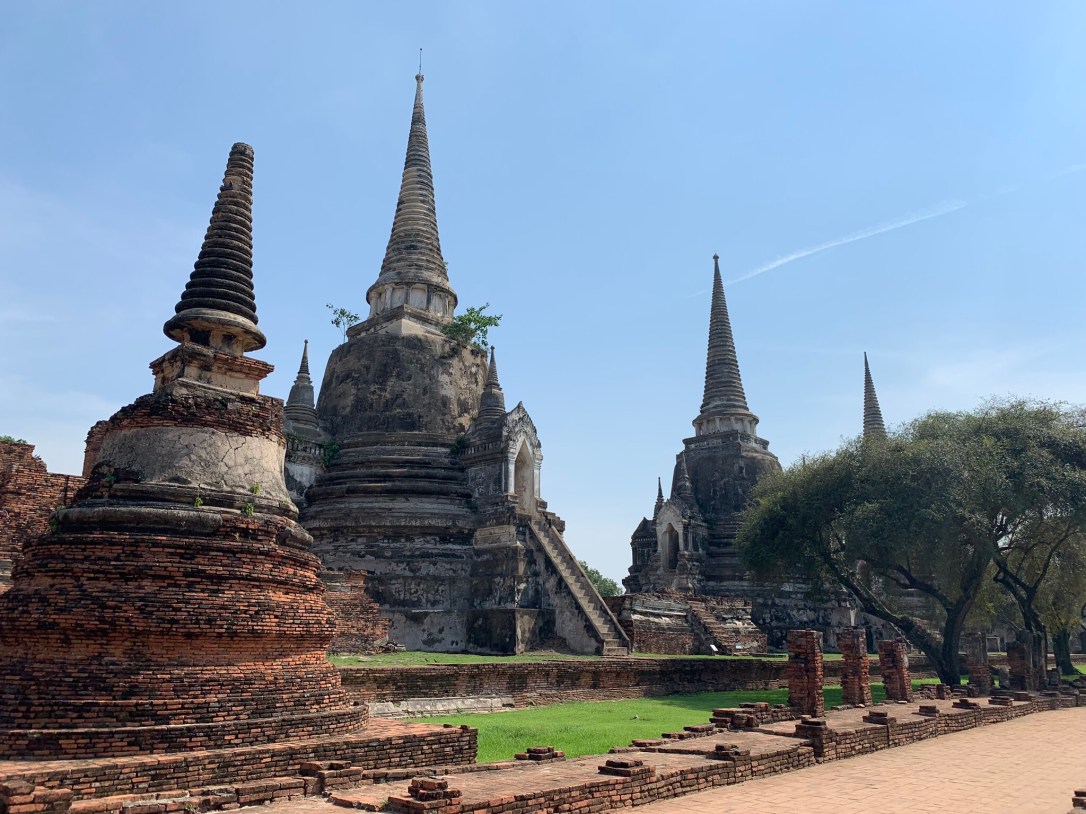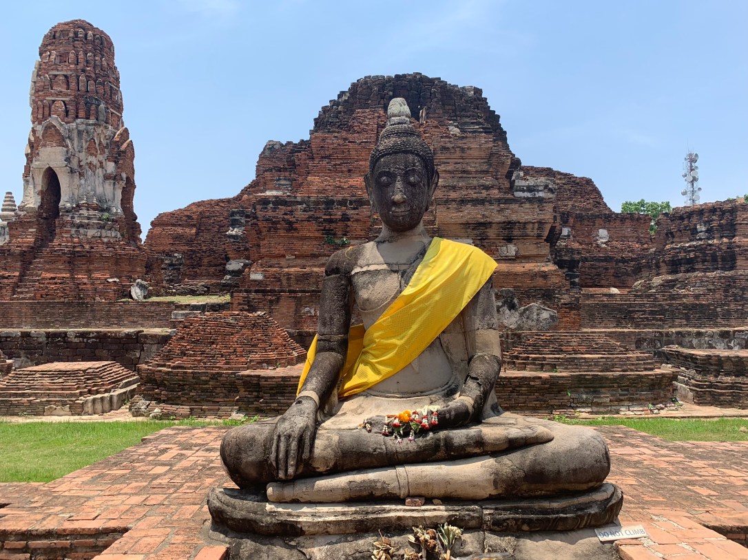 From the train station in Ayutthaya, take a tuk tuk to Wat Maha That (unless you already have another destination in mind). Here you can use the bathroom, have a coconut, rent a bicycle, buy a scarf in case you forgot to bring one… We bought the ticket that allows you to visit six temples for 6,20€ (220 baht). A single entrance fee is 50 baht. We visited Wat Maha That, Wat Ratchaburana, Wat Phra Ram, and Wat Phra Si Sanphet. It was possible to walk between these temples, if you want to go to the others you would need a bike or a tuk tuk. Our favourite were the first and last one. We had lunch in front of the entrance of Wat Ratchaburana.