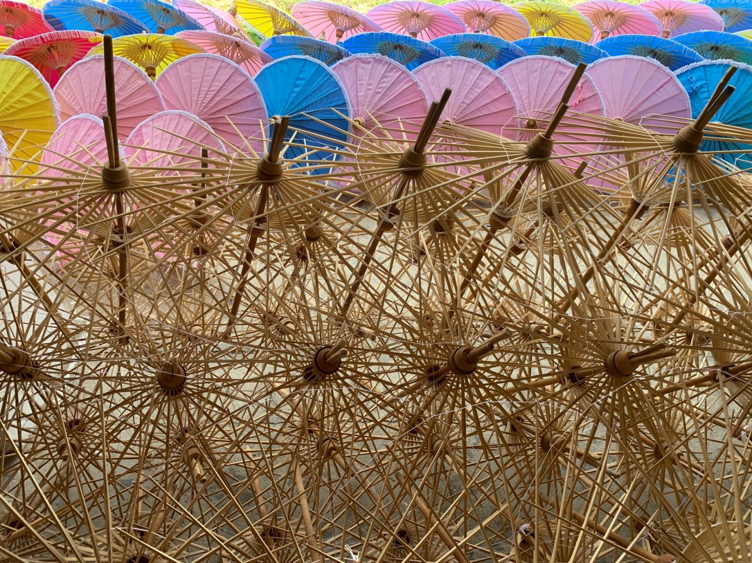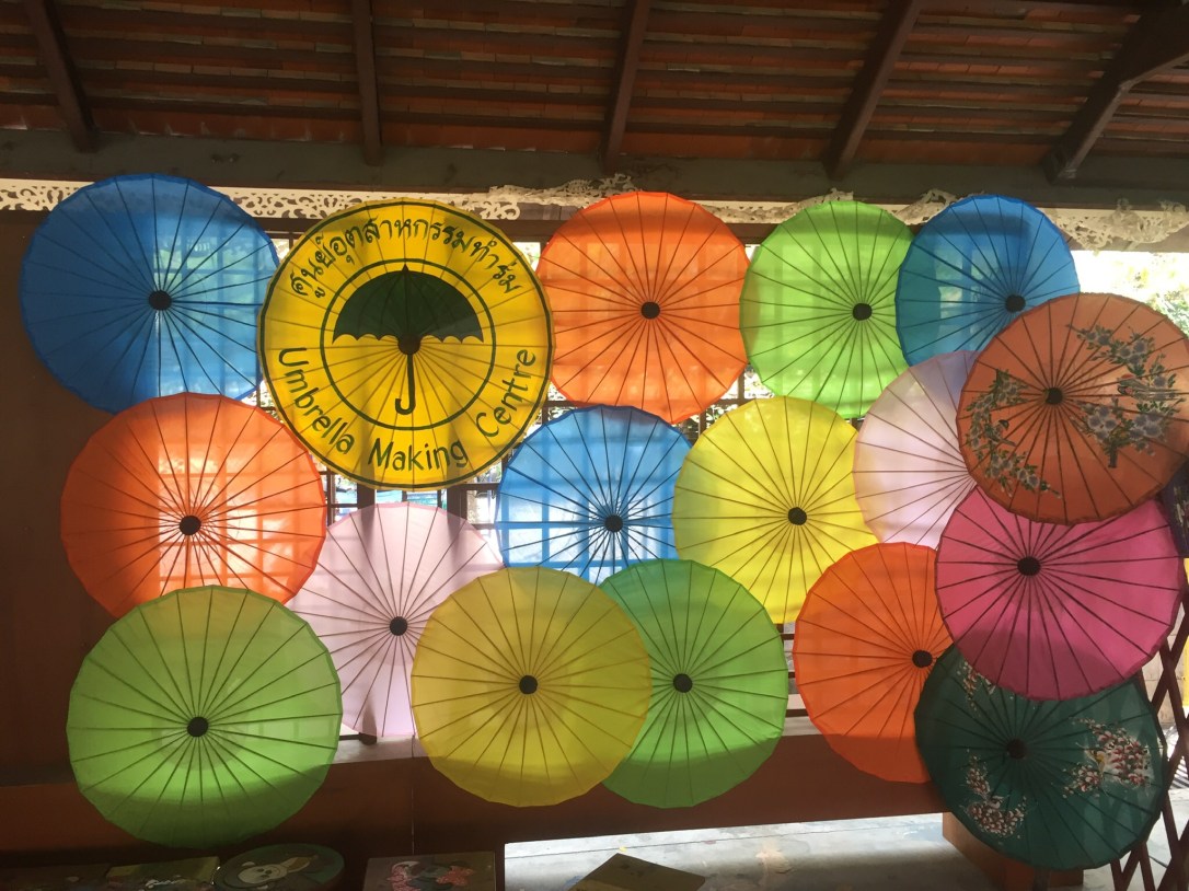 About half an hour by scooter on a pretty busy road. You can visit the factory and see how the umbrellas are manually produced. If you are feeling artsy, you can paint your own umbrella. You can buy umbrellas of different sizes and materials (mulberry paper is the traditional material), as well as other souvenirs.
