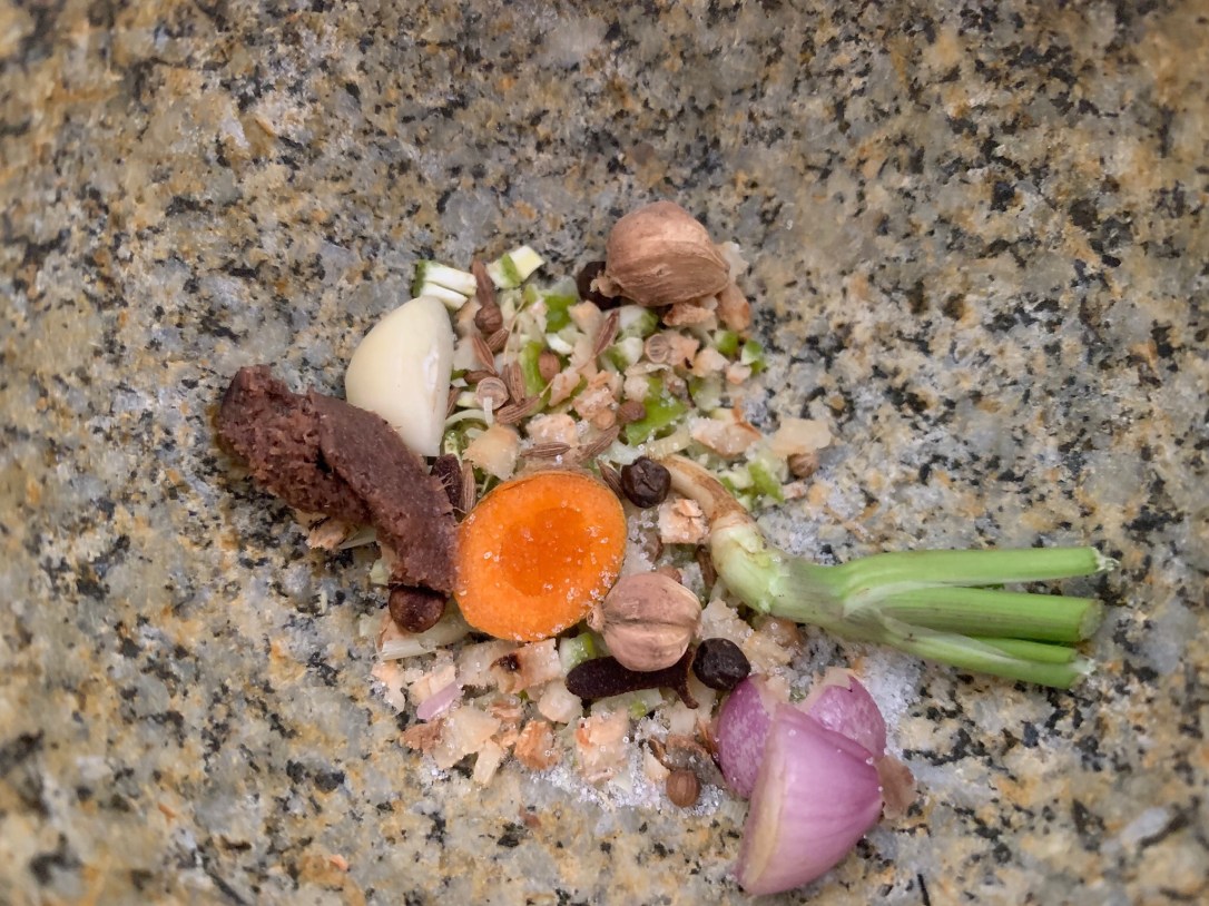 The difference with the cooking class we did in Bangkok is that everyone gets to choose their own menu. This means some more personal attention for each of us by one of the staff. Glass noodle salad, Tom Yum Soup, Massaman Curry, Kao Soy, morning glory, black sticky rice pudding, fried banana spring roll… we don’t leave with empty bellies! And this time, we got to make our own curry paste, something we missed a bit in Bangkok.