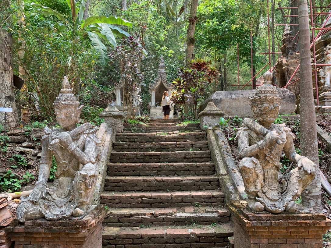 This temple located just on the outskirts of Chiang Mai was our favourite and we highly recommend going there. It’s about 20 minutes by scooter from the centre, or you can take a Songthaew or a Grab. You can also hike there on the monk’s trail.