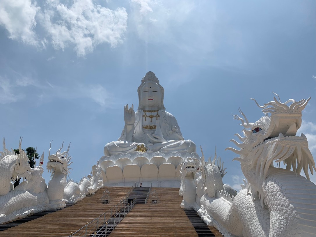 About 20 min northwest of the centre (we drove there from the White Temple, takes a while but you go through some pretty landscapes and villages). Huge Buddha, you can take the elevator up to the head (about 1€). Restaurant based on donations (for monks).