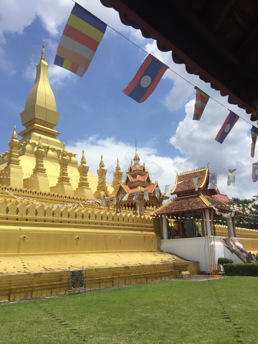 Our day ends with some Egyptian food (why not) and maybe a few too many gin and tonics. The next day we are determined to check out a few of the main sights of Vientiane before taking our night bus to Pakse. We head to the Pha That Luang monument, which is basically just a gigantic golden stupa.
